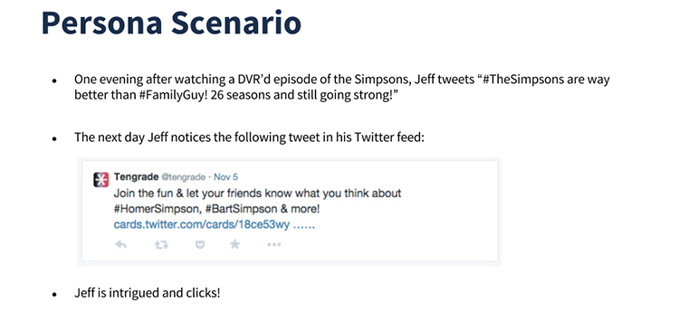 We created a persona scenario to articulate the exact path Jeff would enter the Topic Page. In this case, Jeff enters the Topic Page from a targeted Twitter advertisement.
