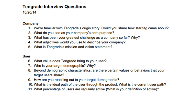 We conducted a stakeholder interview to learn about Tengrade and its users as well as to understand Ted’s definition of project success. By the end of the interview, we agreed to focus on increasing the topic pages’ conversion rate, ratings per user, visits per user and vitality metrics.