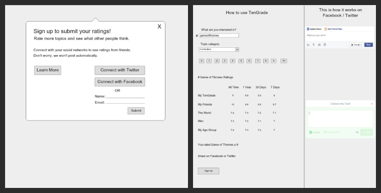 I took ownership of Tengrade’s topic rating flow, while my teammates handled the signup and onboarding education flows. I also owned the best in class audit, sketches, and high fidelity mockups. We all contributed to the stakeholder interview, persona development, persona scenario, user journey and wireframe prototype.